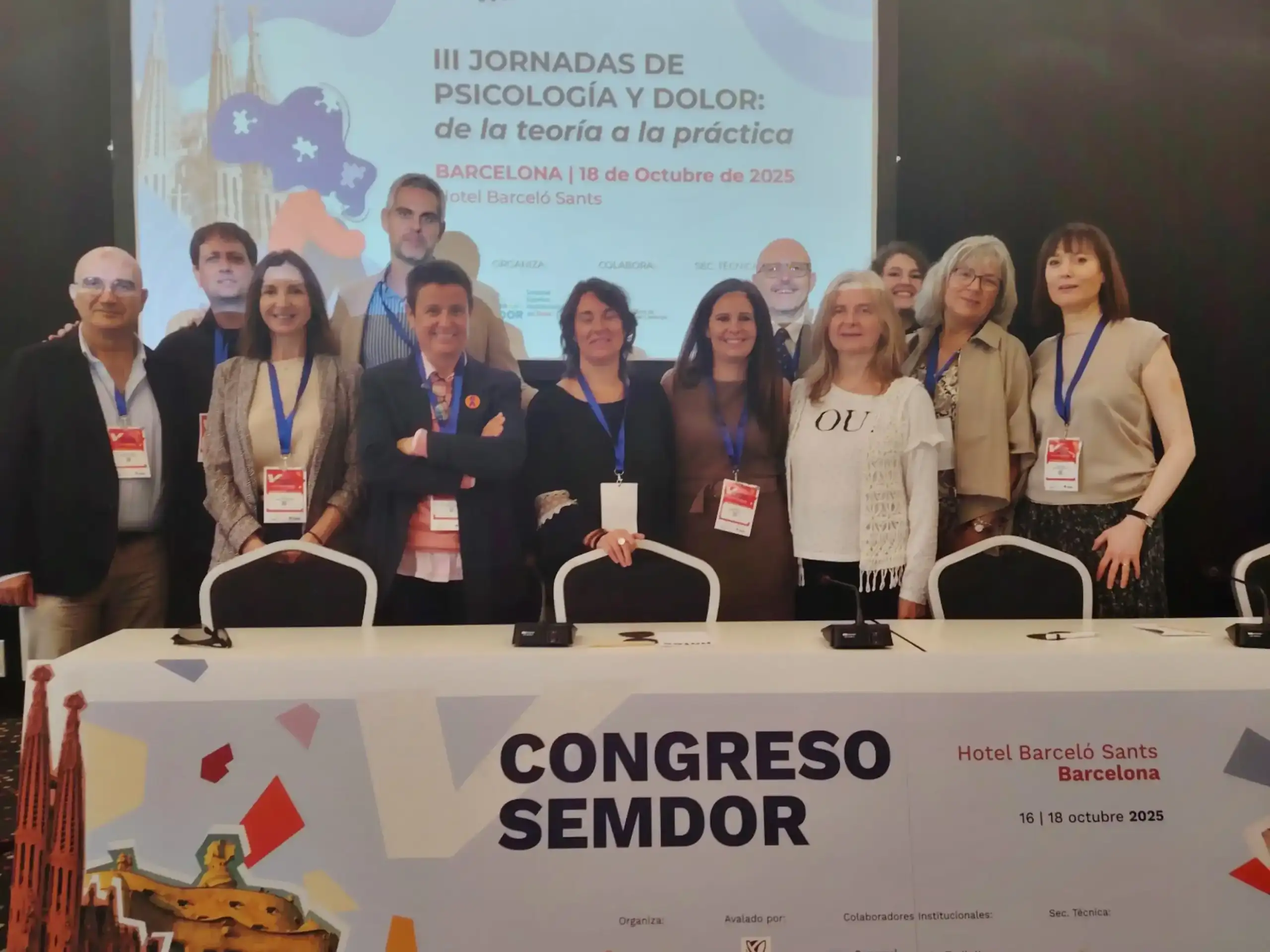 El 18 de octubre de 2025 celebramos las III Jornadas de Psicología y Dolor: de la Teoría a la Práctica de la Sociedad Española Multidisciplinar del Dolor (SEMDOR) en el hotel Barceló Sants de Barcelona, coincidiendo con el congreso que realizaba SEMDOR ese mismo fin de semana en el hotel. El procedimiento fue similar al del año anterior, con inscripción tanto presencial como online, y con descansos entre algunas de las ponencias. Sin embargo, esta vez se optó por utilizar un enfoque aún más dinámico, promoviendo la participación del público a través de juegos, actividades y preguntas. Este nuevo formato tuvo una muy buena acogida, pues las actividades prácticas hacen las ponencias más amenas, ayudan mucho a interiorizar la parte teórica y permite conocer cómo ésta se aplicaría de forma práctica en terapia o en el día a día.